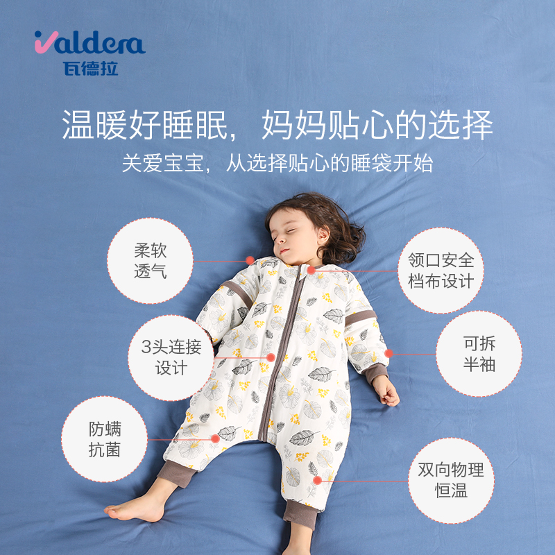 • valdera旗舰店婴儿睡袋恒温春秋冬款纯棉加厚宝宝分腿防踢被神器儿童四季通用01/4